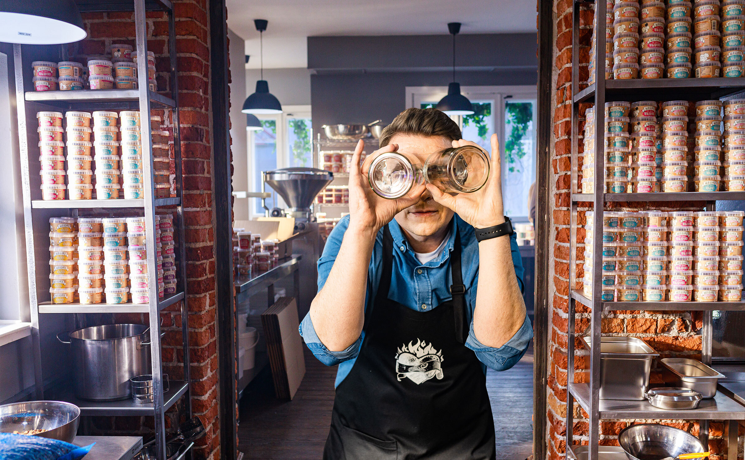 Dodam, że pierwsze masła sprzedawałem w swoich sklepach stacjonarnych. Wyszedłem z założenia, że to będzie najlepsze miejsce na pierwszy test sprzedaży i zainteresowania produktem. Początkowo na etykiecie nie było nawet nazwy Maslove tylko: “Bardzo pyszne masło orzechowe”. Produkcją pierwszych produktów nie zajmowałem się osobiście, tylko zleciłem to osobom na produkcji. Na tamten moment masło orzechowe było jednym z produktów powstających w zakładzie garmażeryjnym, a nie w dedykowanym zakładzie produkcyjnym. Po pierwszych konsultacjach ze sprzedawcami usłyszałem, że produkt sprzedaje się dobrze, ale z produkcji nie przychodzą nowe dostawy. Zacząłem się zastanawiać, jak to możliwe. Czemu nie oferujemy produktu, na który wyraźnie jest zapotrzebowanie. Na produkcji okazało się, że maszyna, którą mieliliśmy, jest bardzo mało wydajna i po chwili użytkowania przegrzewa się. Dzisiaj się z tego śmieję, ale na początku produkowaliśmy 4 opakowania na godzinę, a więc niecałe 2 kilogramy. Konieczna była więc modernizacja parku maszynowego. W tamtym właśnie momencie podjąłem decyzję o założeniu nowej działaności pod marką MASLOVE.
