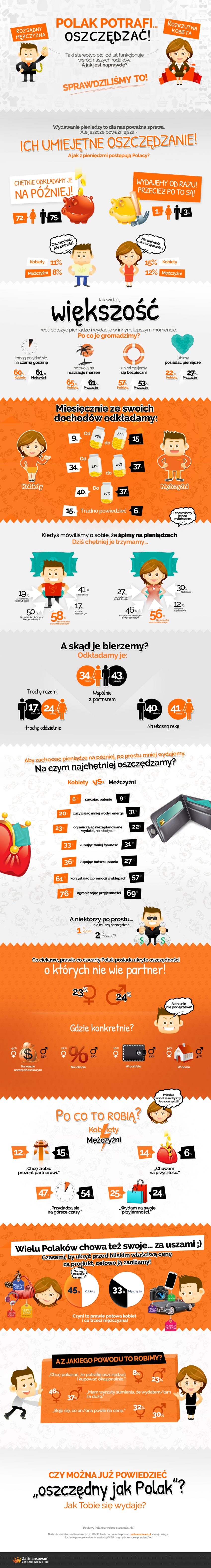 Czy Polacy potrafią oszczędzać? Jak robią to kobiety a jak mężczyźni? Oszczędzamy razem czy osobno? Zobacz infografikę prezentującą wyniki badania przeprowadzonego przez GfK Polonia na zlecenie portalu Zafinansowani.pl.