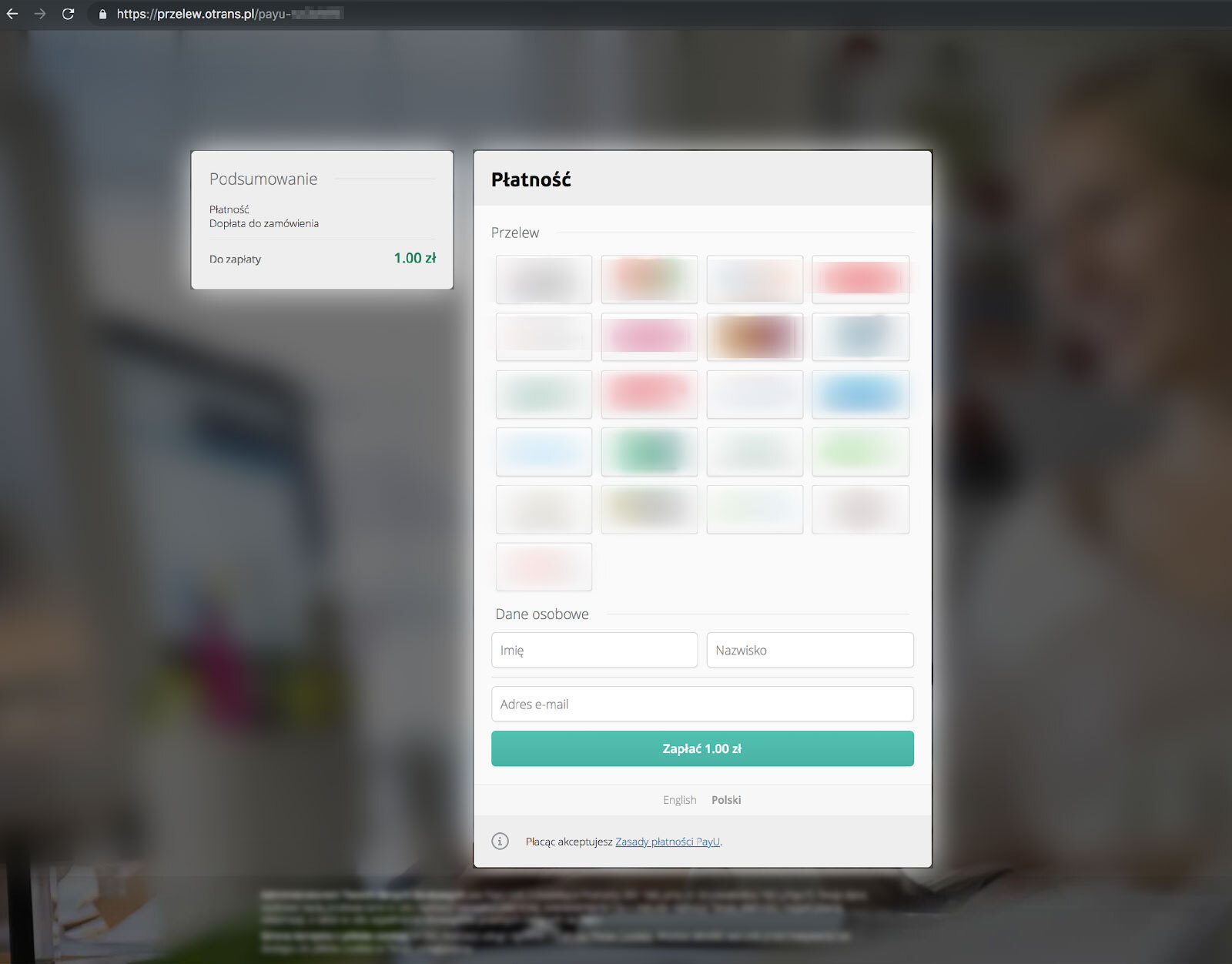 1. Przekierowują klientów do fałszywej bramki pośrednika płatności, która – choć wyglądem przypomina popularne bramki – w rzeczywistości ma niepoprawny adres URL.