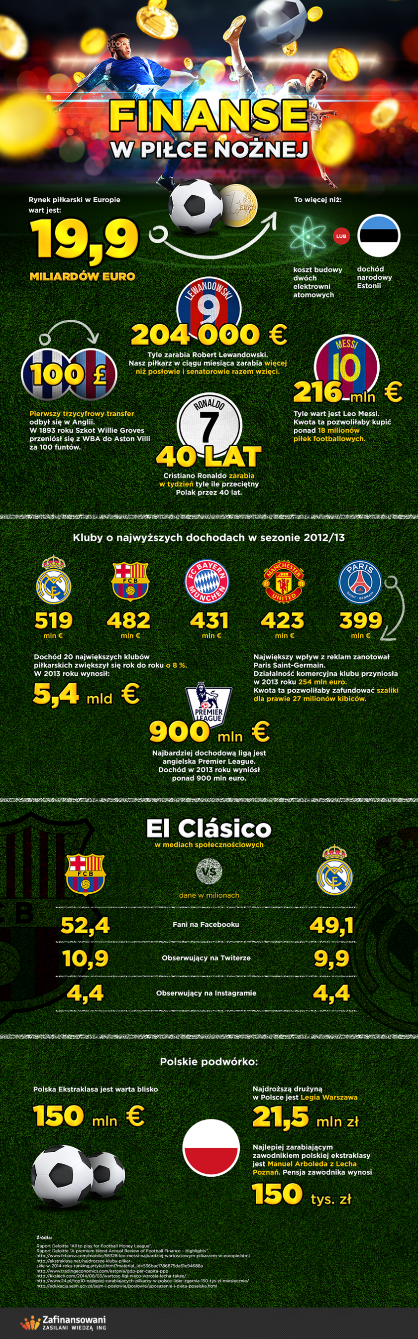 Rynek piłkarski w Europie wart jest: 19,9 miliardów euro