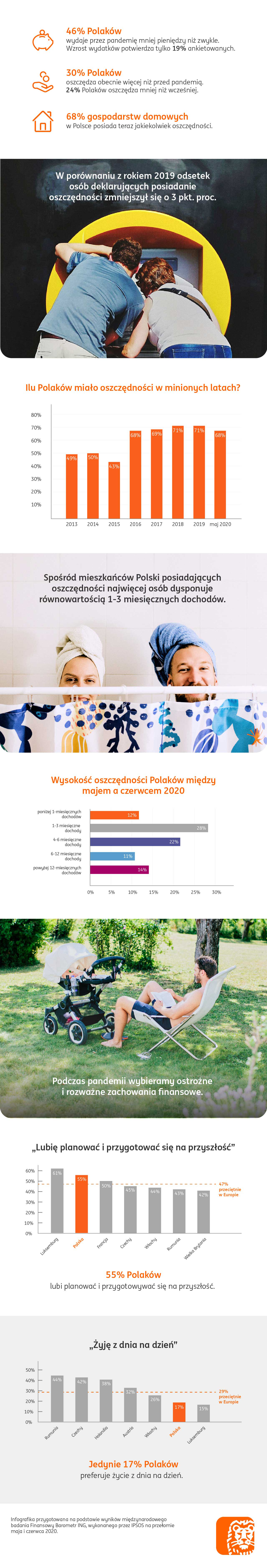Infografika przygotowana na podstawie wyników międzynarodowego badania Finansowy Barometr ING, wykonanego przez IPSOS na przełomie maja i czerwca 2020.